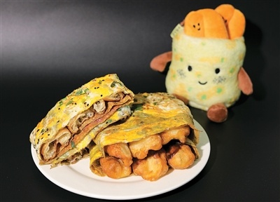 随着新兴产业发展,煎饼馃子衍生出玩偶、冰箱贴等文创产品,成为天津市的代表性城市礼物之一。图为在天津拍摄的煎饼馃子和玩偶。新华社记者 杜潇逸 摄